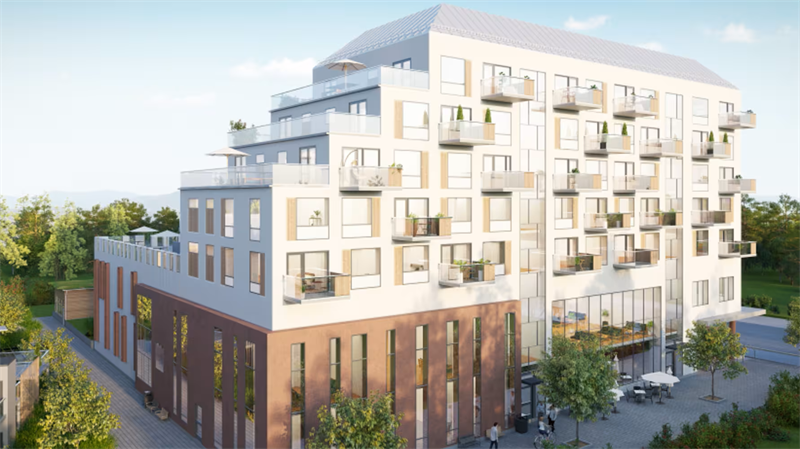Till flera av de nybyggda lägenheterna blir det stora terrasser utplacerade på tre olika plan.