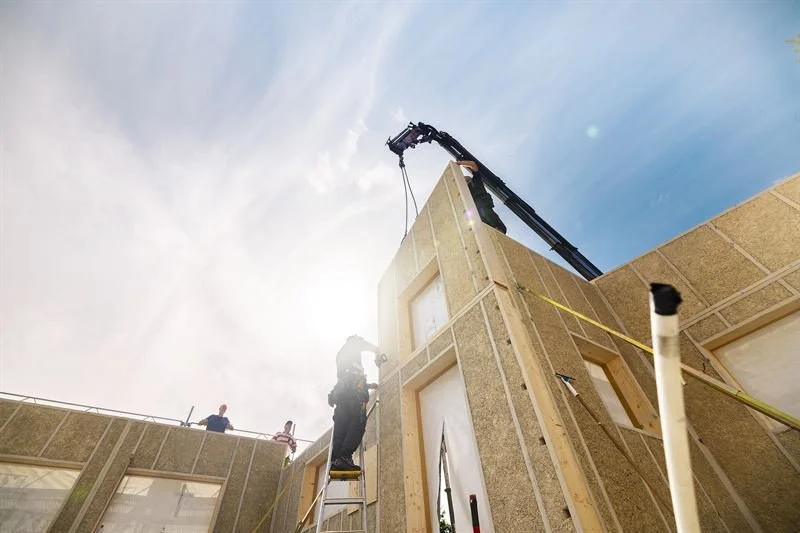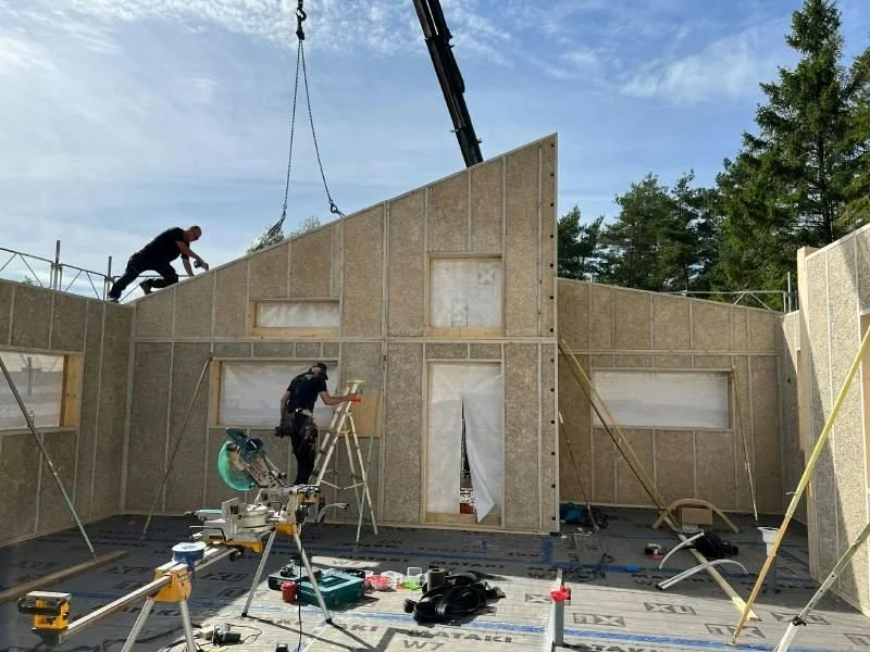 Huset är till stor del prefabricerat för att hålla god kvalitetskontroll och möjliggöra ett snabbt montage.